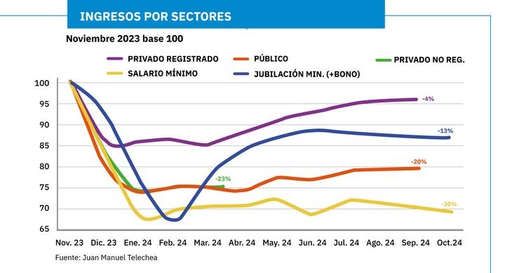 El control sobre los ingresos tuvo un efecto directo en la desaceleración de los precios, al limitar la capacidad de las empresas de trasladar mayores costos laborales a los consumidores. Sin embargo, el impacto social fue significativo, ya que amplió la brecha entre la inflación y el crecimiento de los salarios reales, profundizando las desigualdades en un contexto donde en el segundo semestre del 2024 más del 50% de la población vive por debajo de la línea de pobreza.