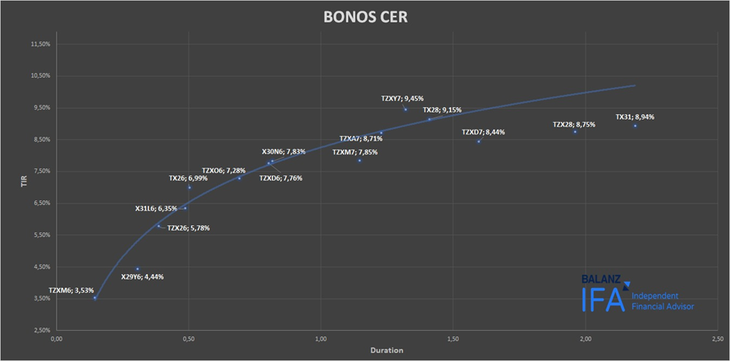 Hoy la curva CER muestra rendimientos reales que van desde CER +3,5% hasta CER +9,5%, según plazo. Esto quiere decir que te cubre frente a la inflación y te da cierto colchón extra, según el plazo.