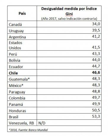 De acuerdo con datos del Banco Mundial, Chile es el octavo país de América en materia de igualdad. Esto es porque se encuentra debajo de Canadá, Argentina, Uruguay o Estados Unidos.
