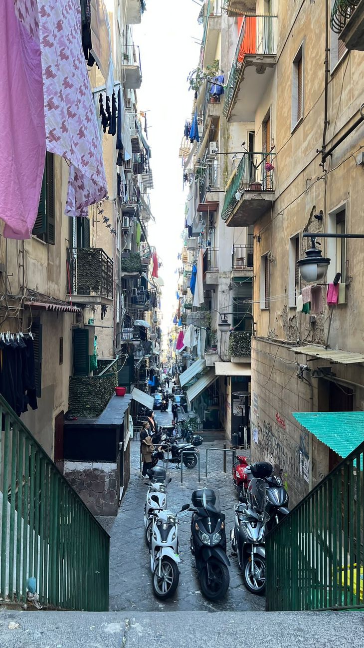 Capturamos las fotos que pudimos entre llovizna, celulares viejos, motos fugaces e inexperiencia. Unos días después,cuando contamos la experiencia a un familiar en Bari (región de Puglia), nos respondió con ojos bien abiertos “Quartieri Spagnoli? Di notte? Ma siete pazzi!”.