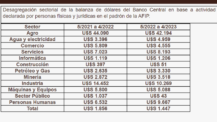 -Los datos son evidentes, solo hay tres sectores que tienen saldo positivo en el balance de entrada y salida de dólares. Esos sectores son Agro, Minería e informática, el resto de los sectores muestran, en los últimos 12 meses, saldo negativo. Hay mucha expectativa en que el sector petróleo y gas puedan revertir el saldo negativo luego de las inversiones que se realizan en el gasoducto Néstor Kirchner y oleoductos que se están habilitando hacia Chile. A futuro deberíamos tener un tipo de cambio que nos permita tener saldo positivo de dólares, sin cerrar la economía.