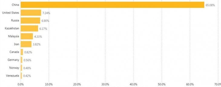 Datos presentados en abril de 2020 por el Centro de Finanzas Alternativas de la Universidad de Cambridge (CCAF) demostraban que el gigante asiático representaba el 65% del poder total de la red Bitcoin, eclipsando al resto de los participantes.