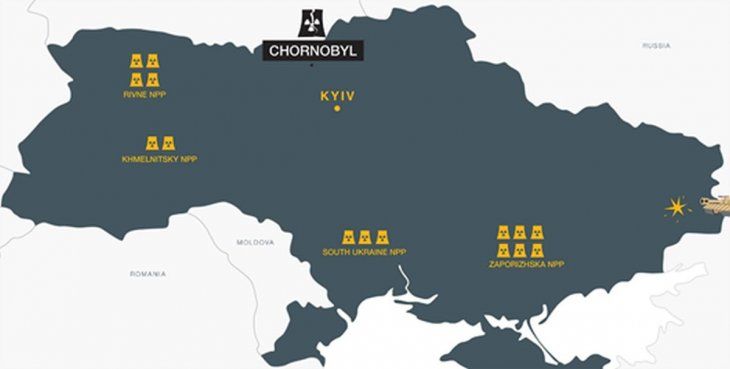 A la fecha, Ucrania alcanzó un máximo de 15 reactores distribuidos en cuatro centrales nucleares (Jmelnitski, Rovno, Ucrania del Sur y Zaporozhie), las cuales representan la columna vertebral del portafolio energético del país, produciendo el 53% de la electricidad, frente al 31% del Carbón, 7% del gas y 8% de la energía hidroeléctrica.