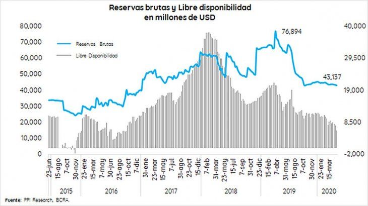 Como en cada crisis de confianza, debimos aprender a vivir con lo propio, es decir revisar la billetera y contar las monedas. Es algo que seguimos de cerca ya desde mediados de 2018. Si bien las reservas del Banco Central (BCRA) se mantienen relativamente estables, las de libre disponibilidad, no han hecho más que disminuir sistemáticamente.
