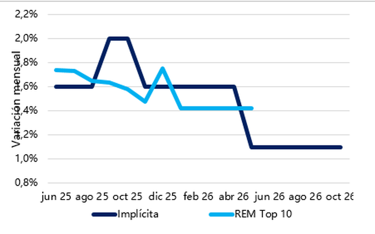 Frente a este conjunto de posibles escenarios, el posicionamiento de cartera se orienta a preservar valor real y mantener cobertura ante los diferentes entornos posibles. Por un lado, de prevalecer la estrategia de desinflación bajo un escenario con cierta volatilidad por el período electoral, consideramos que el tramo corto de la curva CER, mediante los instrumentos TZXO5 o el TZXD5 presentan un mejor retorno con respecto a la tasa fija ya que la inflación breakeven, que actualmente se ubica en torno a 1,6%/,1,7% mensual (ver Gráfico nro. 3) se encuentra por debajo de nuestro escenario base.