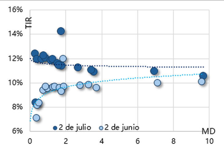 Gráfico nro. 2. Curva Bonos CER al 2 de julio vs. 2 de junio
