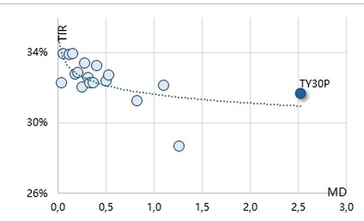 Si bien fue una operación positiva en términos de volumen, el pricing reflejó que el mercado aún no está dispuesto a tomar duration sin una prima considerable (ver Gráfico nro. 1). En este sentido, no es evidente que esta herramienta sirva para recomponer reservas, sino que más bien pone de manifiesto que el fondeo en pesos sigue condicionado a ofrecer tasas reales exigentes.