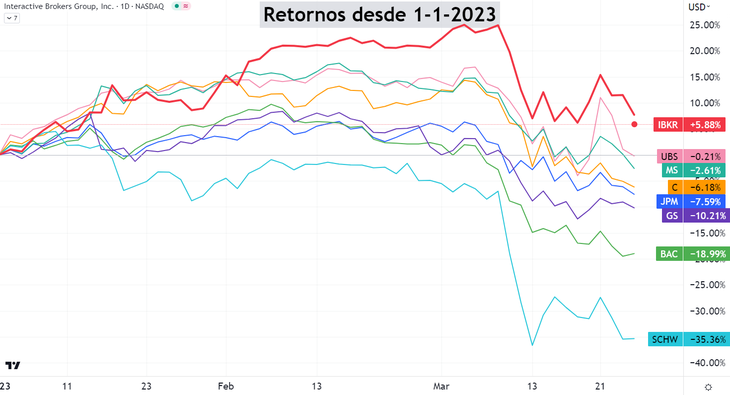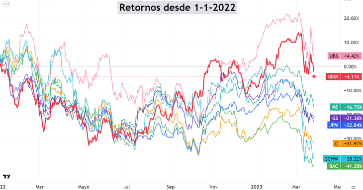 Interactive Brokers y UBS son los que mejor comportamiento relativo han tenido.