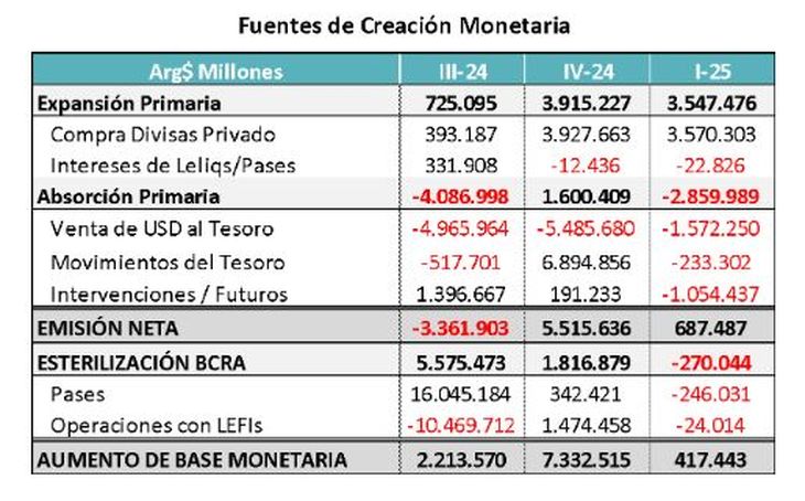 Los primeros pasos implicaron cortar las principales fuentes de creación de pesos, que eran la Asistencia al Tesoro y el pago de intereses por los Pasivos Remunerados del BCRA. Haber limitado esos factores no corta totalmente las fuentes de creación de pesos. Se mantiene la emisión por compra de divisas en el MULC y sobre todo se mantiene el rol del multiplicador bancario, que genera crecimiento de los agregados monetarios vía crédito.