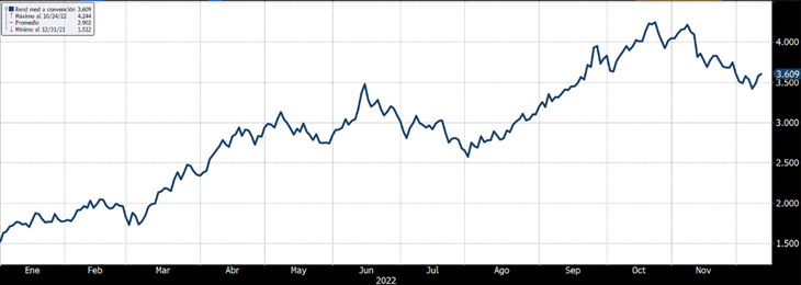 Naturalmente, la consolidación de una tendencia de desinflación sería una noticia bien recibida por los mercados. La tasa de interés libre de riesgo, la de los bonos del Tesoro a 10 años, ya muestra señales de compresión, cayendo por debajo del 3,5%.