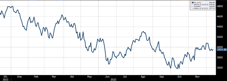 En términos acumulados, este ha sido un año muy adverso: las acciones registran una caída cercana al 15% en 2022. De continuar así, el desempeño será el más negativo desde el año 2008, cuando la crisis financiera llevó el índice a un retroceso cercano al 40%.
