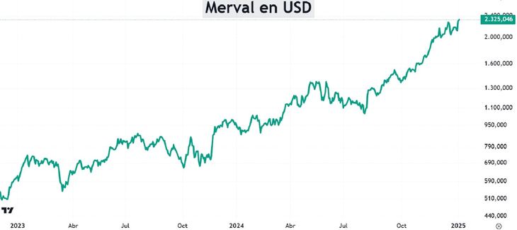 El resultado se reflejó en los mercados. Las acciones argentinas, especialmente las del sector bancario, tuvieron un desempeño espectacular. El Merval en USD subió 123,5% en el año: