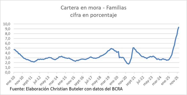 Si el sector corporativo está aplicando los frenos, los hogares directamente han chocado contra la pared. El deterioro del crédito a las familias es quizás el dato más dramático del informe y el que mayores implicancias macroeconómicas y sociales acarrea a mediano plazo. Los préstamos al consumo registraron una caída del 0,6% en términos reales y sin estacionalidad en febrero.