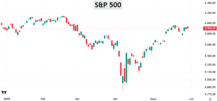 Veamos el gráfico del S&P 500, que acumula un 2025 prácticamente neutral: