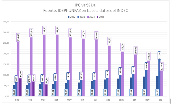 El efecto de la devaluación del 120%, tuvo un proceso, primero en el dato de diciembre de 2024 la inflación fue 197% (i.a. = doce meses), en enero de 2025 fue 236% (i.a.) hasta llegar a abril y su pico de 290% (i.a.), esto niveles de alta inflación impactaron en el salario. Se ajustó los salarios por variación mensual y eso desordeno la discusión. Otra variable que tuvo impacto y que se no se reflejaba en el IPC fue el ajuste de tarifa. El gobierno fue táctico ralentizo los aumentos y triplico la AUH y la tarjeta alimentar. Pero todos los especialistas conocen que el ponderador alimentos y bebidas representa el 30% y tarifas un 10% de incidencia en la construcción mensual del IPC. Lo cual también genero más polémica. Principalmente porque los alquileres superaron por en demasía las paritarias.