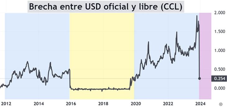 Luego de las medidas y la devaluación, el mercado reaccionó de manera positiva, ya que la brecha cambiaria se redujo drásticamente: