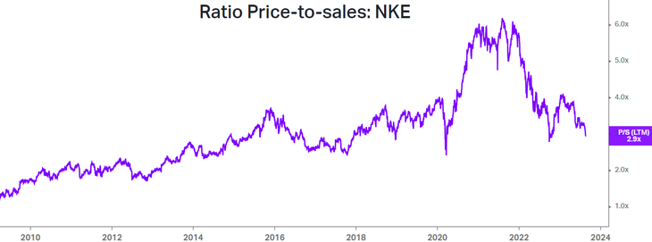 La valuación de Nike, medida por el ratio Price-to-sales, está en niveles promedio: