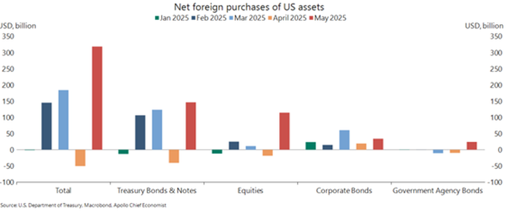 Sigue firme la demanda extranjera sobre activos americanos en el año en curso Fuente: Apollo
