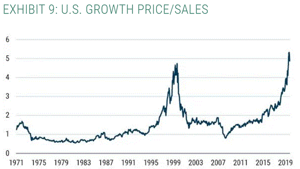 Como les comentaba, hay una burbuja en el mercado de acciones. Sin embargo, la mayor parte de la locura está en el sector que se conoce como “growth”, representado principalmente por empresas ligadas a la tecnología.