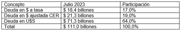 Un dato no menor es la deuda pública argentina medida en pesos, a saber:
