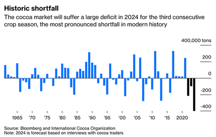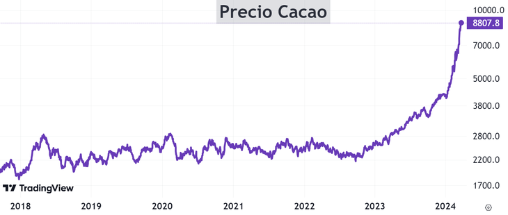 ¿Cómo se explica semejante explosión? Por la gran escasez mundial de granos de cacao, ocurrida durante los últimos dos años y se espera que esta tendencia continúe.