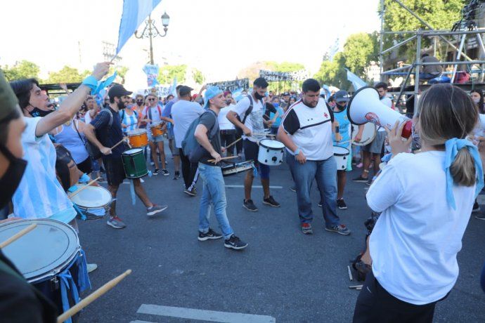 En tanto, en Rivadavia y Entre Ríos, en la otra esquina del Congreso, se ubican los celestes con su lema "salvemos las dos vidas". Allí también tienen su propio escenario y pantalla gigante.