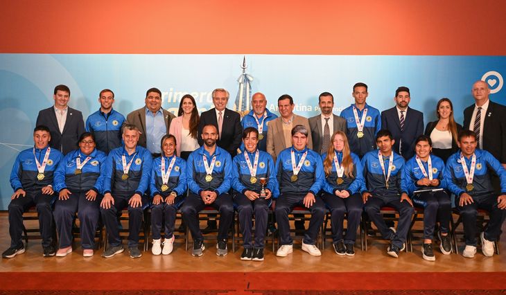 El presidente Alberto Fernández recibió, también en Casa Rosada, junto al director ejecutivo de la ANDIS, Fernando Galarraga, a las jugadoras de Las Murciélagas y los jugadores de Los Murciélagos, quienes la semana pasada se consagraron campeones en el Mundial de Deportes para personas ciegas, que se disputó en la ciudad de Birmingham, Inglaterra.