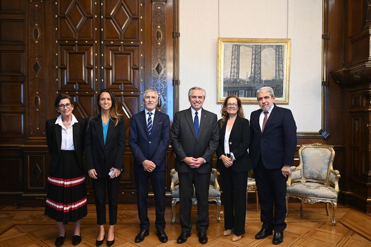El Presidente junto a la embajadora de España en Argentina, María Jesús Alonso Jiménez y el ministro del Interior del Gobierno español, Fernando Grande-Marlaska.