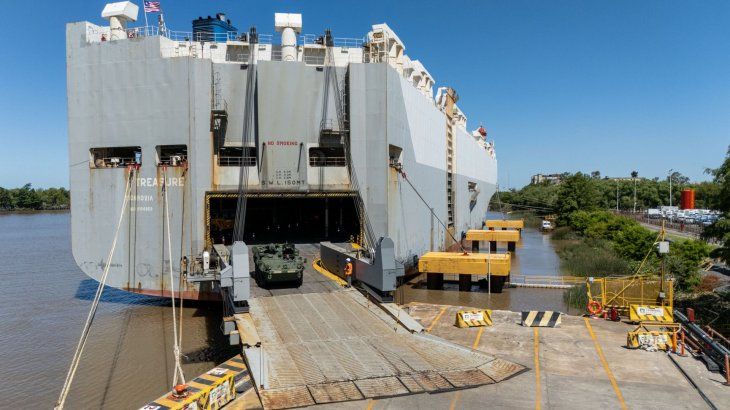 En redes sociales oficiales, el Ejército difundió imágenes del desembarco de los vehículos en el puerto de Zárate, en la provincia de Buenos Aires.