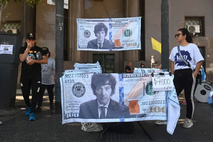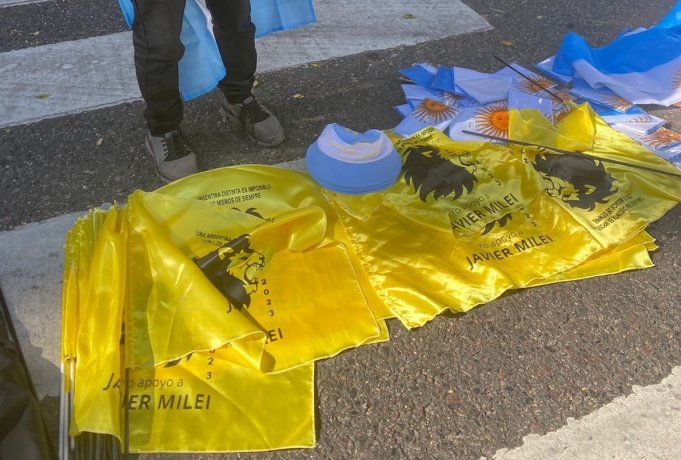 En cuanto a las banderas amarillas con la imagen de un león y un insignia que reza "Yo apoyo a Javier Milei", las mismas tienen un valor promedio de $3.000, mientras que aquella persona que lleve dos en vez de una, podrá obtenerlas con un descuento quedando ambas en $5.000.