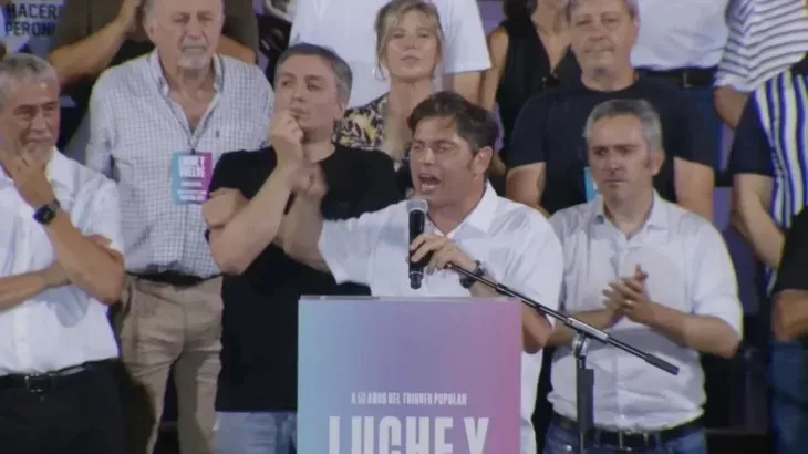 En su alocución, Axel Kicillof apuntó contra la oposición: "Desclasificaron y exhibieron su programa económico. Dijeron lo que planean y quieren hacer en la Argentina. Empezaron a hablar sin tapujos, a diferencia de la elección pasada, de que vienen a ajustar, a achicar el Estado, a privatizar Aerolíneas e YPF. Vienen a quitarle los derechos al pueblo argentino. Esta vez nadie puede hacerse el distraído, nadie puede comerse los globitos de colores ni creerse una revolución de la alegría".