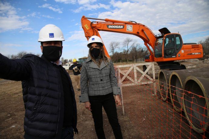 La presidenta de AySA y el jefe comunal recorrieron y supervisaron la "Red Primaria de Agua Impulsión Grand Bourg", que beneficiará a 230.000 personas.