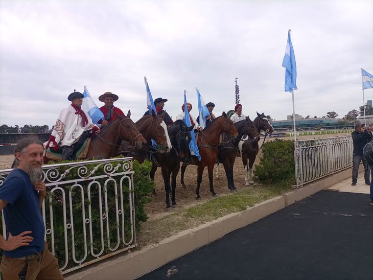 Bailarines de tango y folklore animaron la reunión antes de los discursos. Y también una tropilla de jinetes que apareció sigilosamente en la pista de carreras, por detrás de los invitados que en ese mismo momento estaban mirando imágenes de caballos corriendo por la Pampa Húmeda. “Qué realista todo, si hasta me parece estar oliendo a los caballos”, comentó un distraído que no apartaba la mirada de la pantalla.