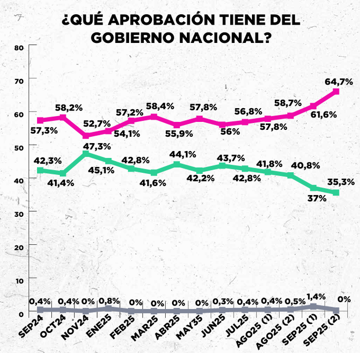 A la situación de Espert también se le suma un contexto económico turbulento, con movimientos en el dólar y nuevamente incertidumbre financiera. El Gobierno enfrenta un 64,7% de desaprobación en octubre, el punto más alto desde el comienzo de la gestión, y el 65,3% no cree que "lo peor" ya haya pasado.
