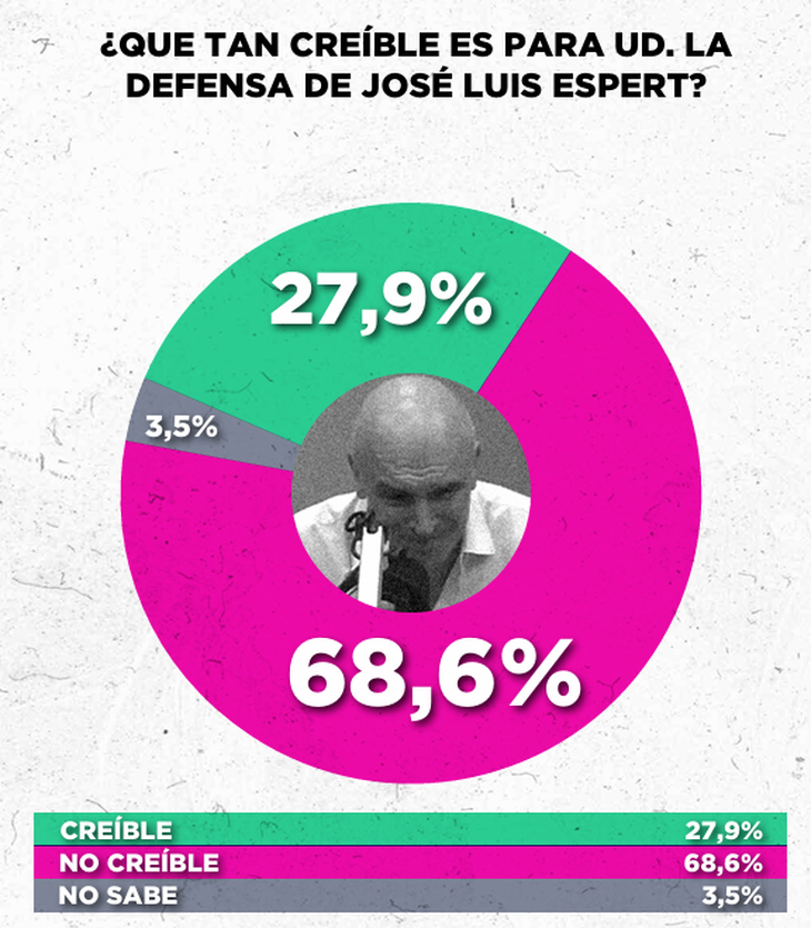 Aunque el economista salió a hablar en medios de comunicación e incluso difundió un video para explicar su relación con Machado, las vueltas, cambios de argumentos y negativas para contestar preguntas directas generaron dudas entre los votantes respecto a su versión de los hechos. De hecho, la encuesta señala que el 68,6% calificó de "no creíble" a la defensa de Espert.