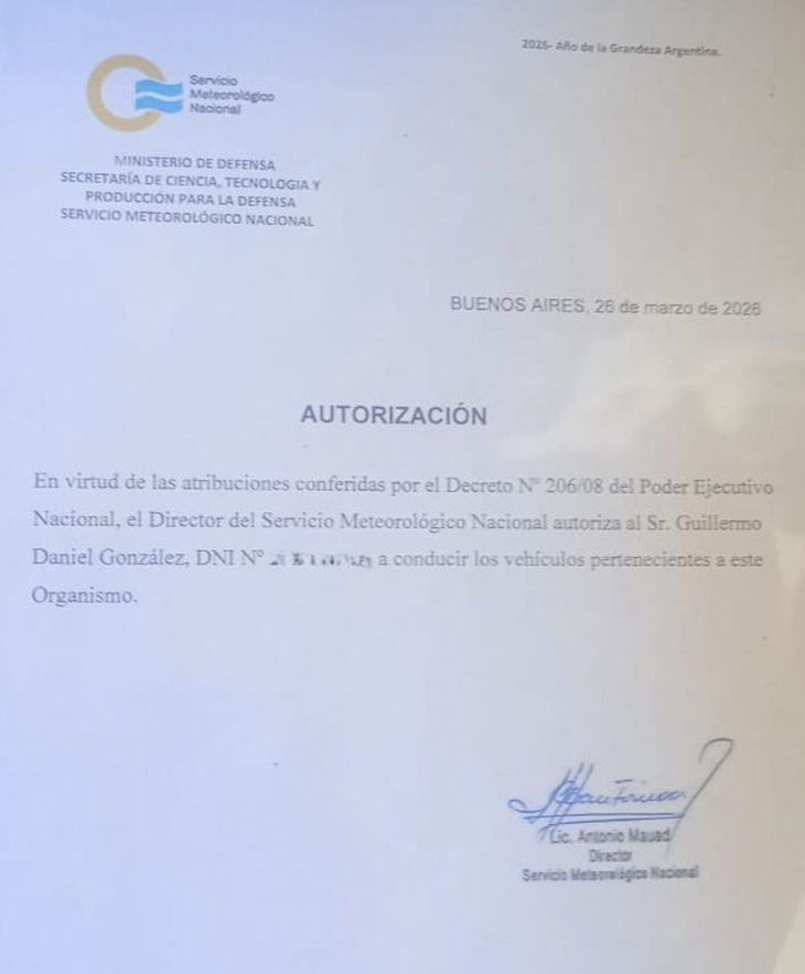 Pero el volumen de despidos no es lo único llamativo. En marzo de este año, y en simultáneo a que avanzó con la desvinculación de dos choferes que formaban parte de la institución, la administración decidió contratar un servicio de transporte. En el mismo acto, Antonio Mauad autorizó cederle al proveedor de vehículos del organismo vales de combustibles como parte del convenio con YPF: es decir, contrataron a un transportista sin coche. La gestión del director también intercedió para proveerle un pase -con validación de la Policía de Seguridad Aeroportuaria- por aeropuertos, permiso previsto exclusivamente para el personal del SMN y no para proveedores.