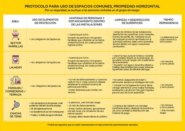 De acuerdo al protocolo aprobado por las autoridades porteñas, no podrán acceder a dichos espacios aquellas personas que sean ajenas al edificio, como tampoco quienes sean grupo de riesgo.