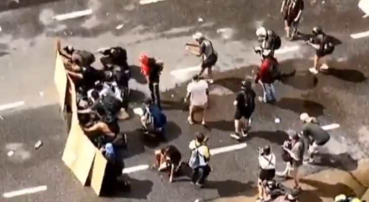 El abogado describe que los involucrados “tenían mochilas, capuchas y cascos” y que se refugiaban detrás de maderas, mientras uno de ellos utilizaba “como escudo una bandera de Direct TV”. También señala que, cuando comenzaron los incidentes, el resto de los manifestantes “se replegó”, quedando ese grupo “aislado y a la vista de todos”.