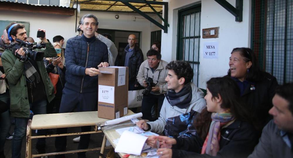 El primer precandidato a diputado nacional por Unidad Ciudadana, una de las tres listas internas del frente Unidad Porteña que participan en las PASO de hoy, emitió su voto a las 10.50 en la mesa 6174 la Escuela Número 12 "Gran Mariscal del Perú Ramón Castilla," ubicada en Conde 943 del barrio de Colegiales.
