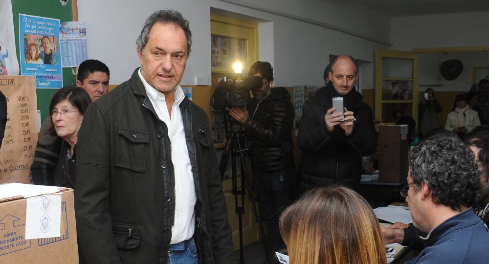 El exgobernador bonaerense y precandidato a diputado nacional por Unidad Ciudadana, Daniel Scioli, emitió su voto en una escuela de Dique Luján, en Villa La Ñata, partido de Tigre, donde destacó "la participación de los ciudadanos de la Provincia".