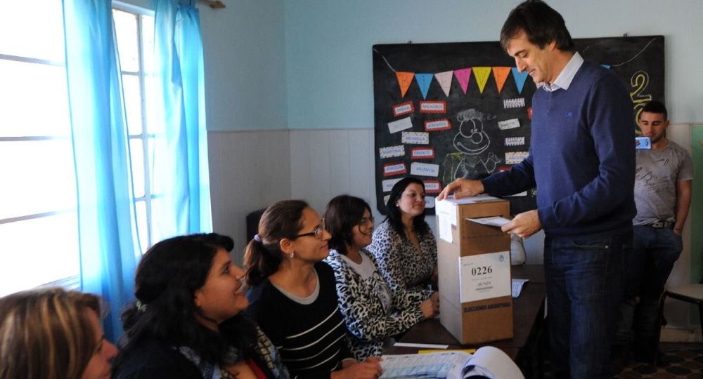 El precandidato a senador nacional de Frente Justicialista "Cumplir" por la provincia de Buenos Aires, Florencio Randazzo, emitió esta mañana su voto en una escuela de la localidad bonaerense de Gonnet en la que el presidente era su hijo Gino, de 16 años.