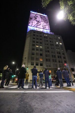 El jefe de gabinete Santiago Cafiero y los ministros de Desarrollo Social, Daniel Arroyo, y de Salud, Ginés González García, rindieron la noche de este domingo homenaje a Eva Perón, a 68 años de su fallecimiento. Lo hicieron iluminando los murales monumentales del histórico edificio de Avenida 9 de Julio y Moreno. El encendido se realizó a las 20.25, el horario de defunción de Evita.