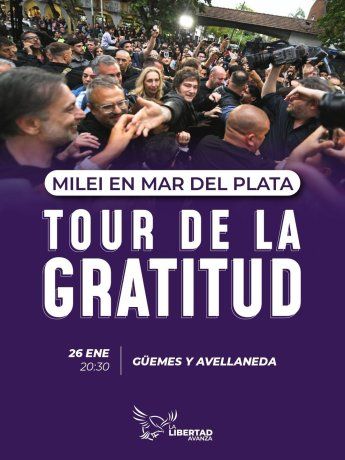 El presidente Javier Milei visitará Mar del Plata el próximo lunes 26 de enero para encabezar una nueva escala del denominado Tour de la Gratitud, la recorrida federal con la que el mandatario busca mantener contacto directo con sus votantes y reforzar el respaldo político a su gestión.