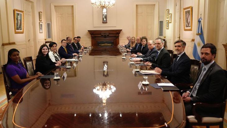 Por el lado argentino, Milei estuvo acompañado de su hermana, Karina, actual secretaria general de la Presidencia, junto al jefe de Gabinete, Guillermo Francos, el canciller Gerardo Werthein y el vocero, Manuel Adorni. A Noboa lo secundaron su ministra de Exteriores, Gabriela Sommerfeld.