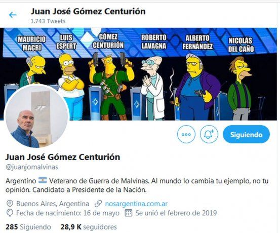 El candidato presidencial del Frente NOS, Juan José Gómez Centurión, subió una fotografía a su cuenta de Twitter en la que comparó con ironía a los postulantes nacionales con personajes de Los Simpsons.