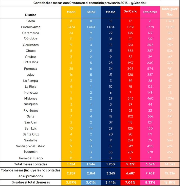 Distinto es el caso de Hacemos por Nuestro País (2.406 mesas con votos 0) y el Frente de Izquierda (6.551 mesas), cifras que se tienen sentido cuando se observa el resultado electoral. En todos los casos, el registro es de acceso público, para permitir a cualquier ciudadano verificar la transparencia del proceso.