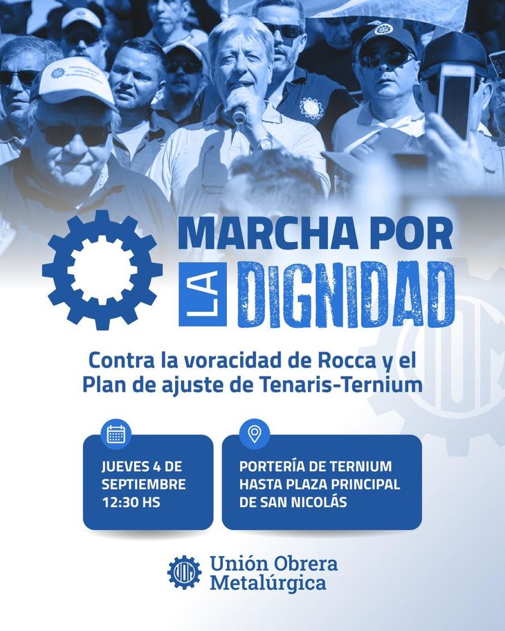 La Unión Obrera Metalúrgica (UOM) encabezará este jueves una marcha en San Nicolás, provincia de Buenos Aires, en reclamo de mejoras salariales y en repudio de despidos en un conflicto laboral de Ternium. Tras la falta de acuerdo con la patronal, los trabajadores de 52 empresas contratistas de la siderúrgica votaron el paro por tiempo indeterminado. El Gobierno dictó la conciliación obligatoria.