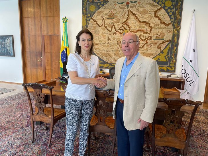 Mondino se reunió pasado este mediodía en el despacho del canciller Mauro Vieira, en Brasilia, acompañada por el embajador argentino en Brasilia, Daniel Scioli, y el brasileño en Buenos Aires, Julio Bitelli, con el objetivo de acercar posiciones con el principal socio comercial.