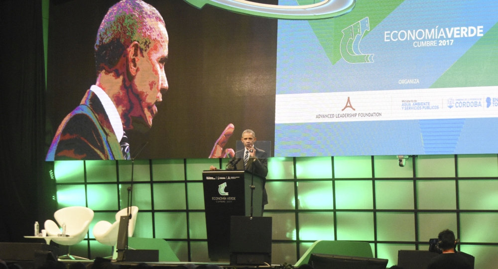 Sin escaparle a la coyuntura en la Casa Blanca, Obama lanzó dardos contra su sucesor Donald Trump, aunque sin nombrarlo. "Hoy otra administración en Washington que tiene otro manera de gobernar", dijo en referencia a la salida de EEUU del acuerdo climático de París.