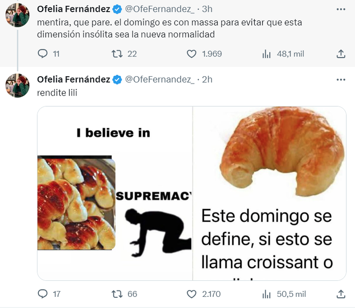 Ante ello, Ofelia Fernández publicó en la red social X: "Me defendieron Vidal y Baby Etchecopar el mismo día. No sé quién está jodiendo con el multiverso pero que siga". Sin embargo, después bromeó en la misma red social: "Mentira, que pare. El domingo es con Massa para evitar que esta dimensión insólita sea la nueva normalidad".